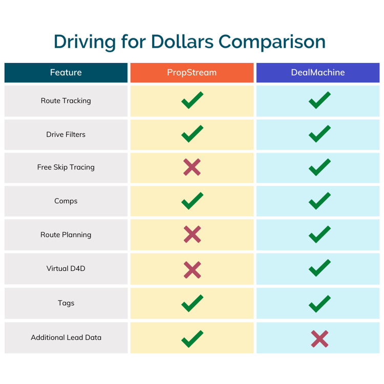 Overall, DealMachine wins this category for driving functionality, unlimited free skip tracing, and user convenience with additional driving features (such as Planned Route mode and Virtual Driving for Dollars). DealMachine is also the better option for quickly and efficiently adding multiple properties to your intended route.